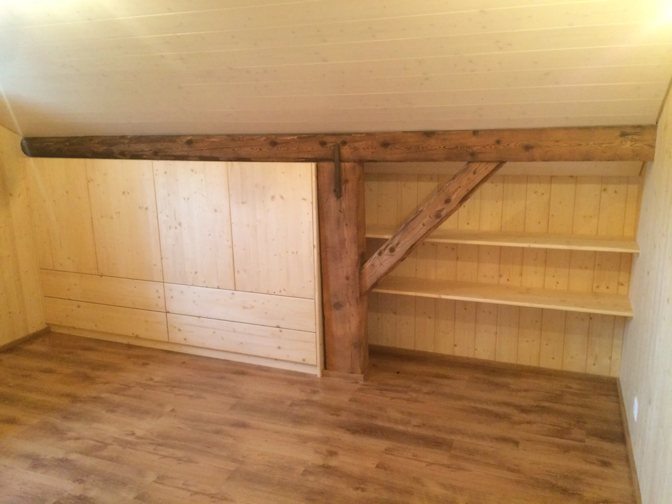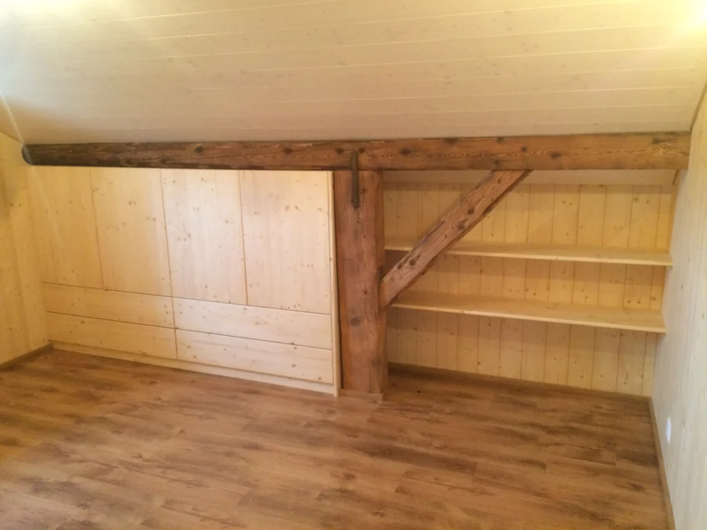 Oui. Nous réalisons aussi bien la structure bois que les aménagements intérieurs (parquet, plafond, finitions), les escaliers et les créations sur mesure.