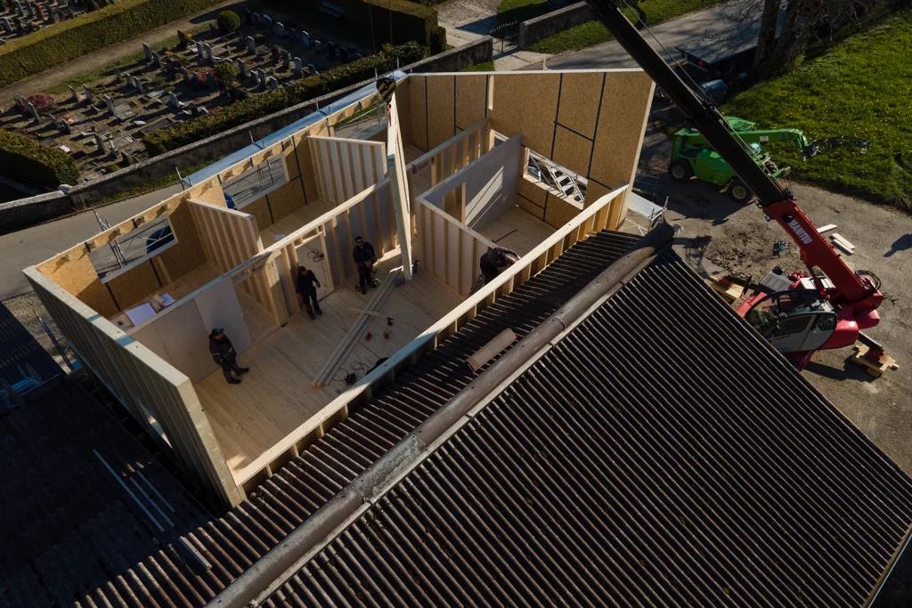 Création d’espaces supplémentaires grâce à des extensions ou étages supplémentaires en bois, légers et très résistants.